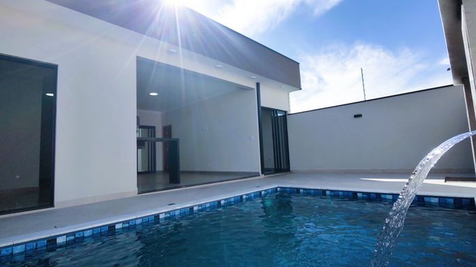 Casa à venda no Portal Ville Jardins, em Boituva - SP! Terreno: 265m² | Área construída: 156m² 3 dormitórios (sendo 1 suíte), banheiro social, sala e cozinha integradas, área gourmet coberta, lavanderia, banheiro externo, piscina, garagem para 3 veículos.