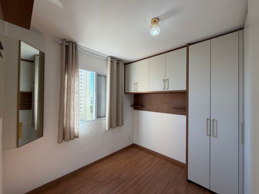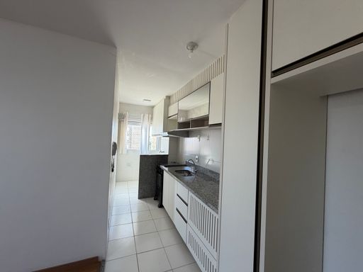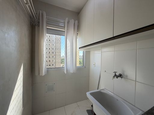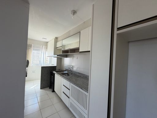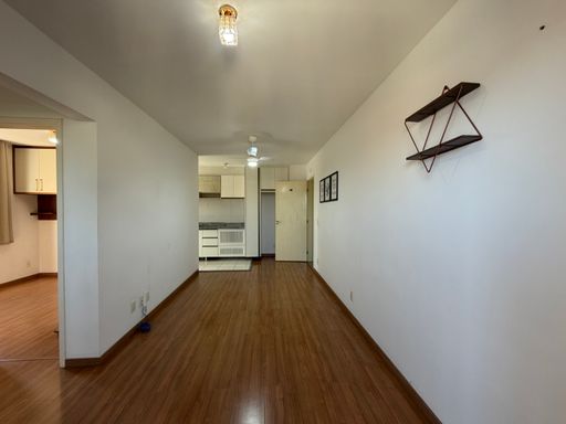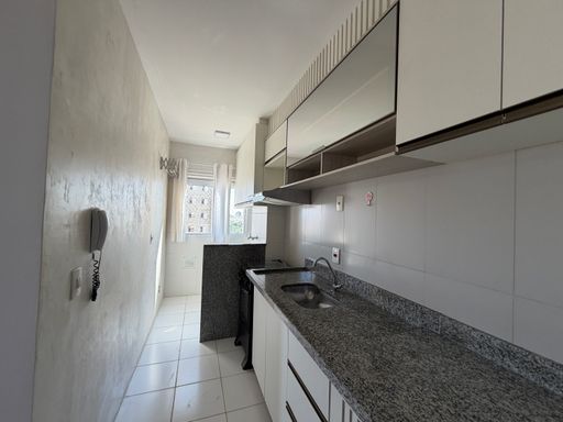 Com 49m², este apartamento conta com 2 dormitórios, banheiro, sala, cozinha, área de serviço, sacada com vista para a portaria/cidade, uma vaga de garagem.