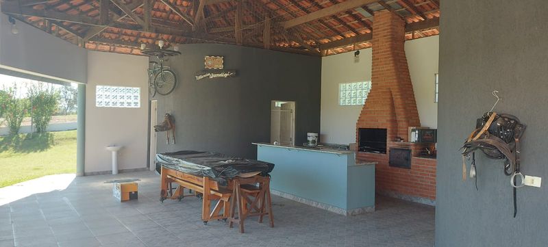 Área de lazer com churrasqueira, fogão a lenha, forno, banheiro e duas despensas;