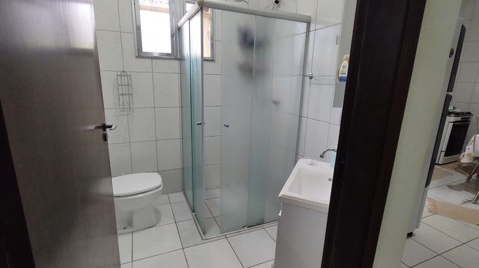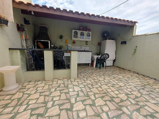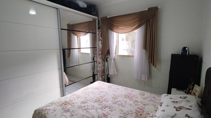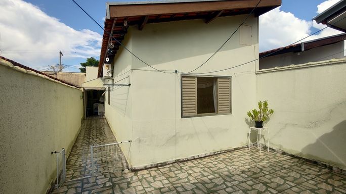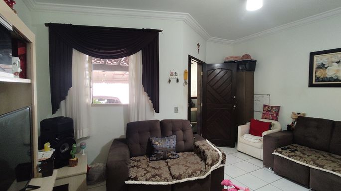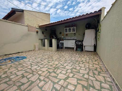 2 dormitórios, banheiro, sala, cozinha, área de serviço, quintal, área coberta com churrasqueira, garagem para 2 carros.