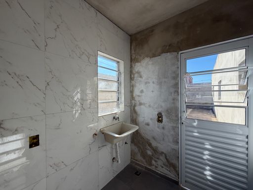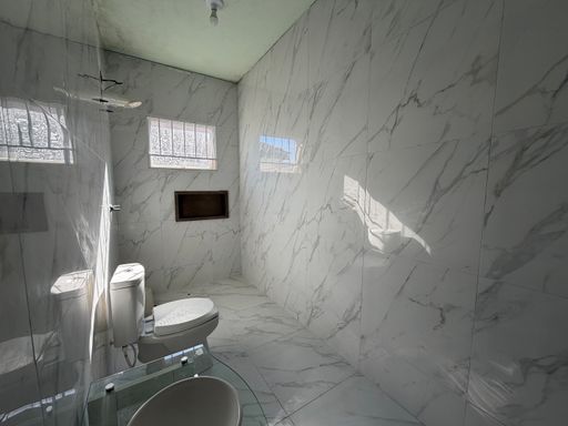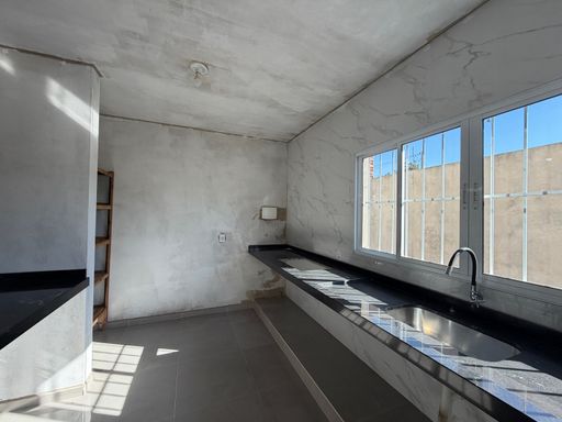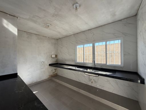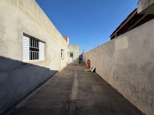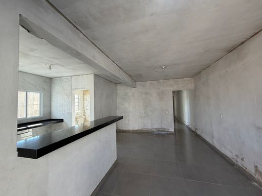 Imóvel com 2 dormitórios (sendo 1 suíte), banheiro social, sala e cozinha integradas, área de serviço, espaço de quintal e garagem para 2 carros.