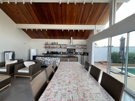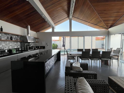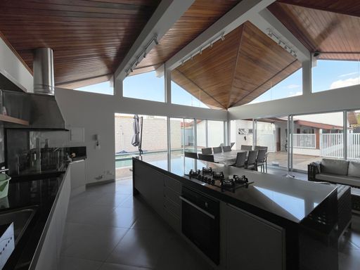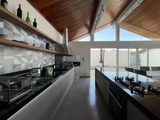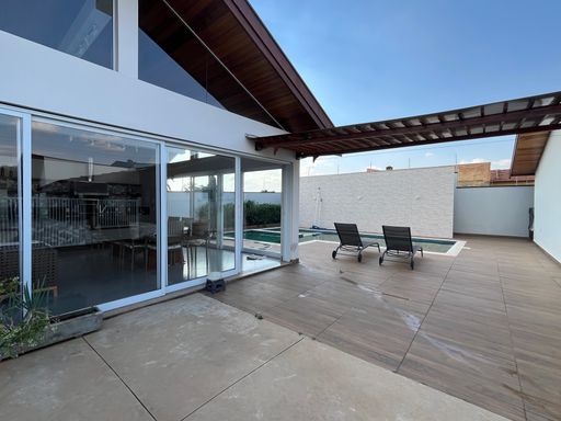 A parte externa conta com varanda, espaço de garagem, banheiro, quintal com piscina, quartinho de ferramentas e uma ampla área gourmet coberta, totalmente equipada e aconchegante, perfeita para receber amigos e familiares.