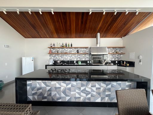 Imóvel com 3 suítes, sala de estar, lavabo, copa e cozinha planejada em conceito aberto, despensa, lavanderia com ármarios.