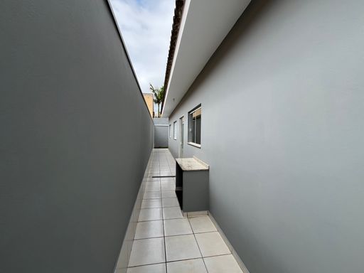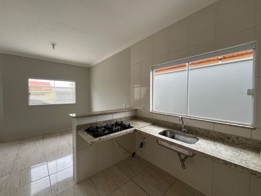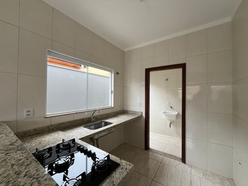 3 dormitórios (sendo 1 suíte), banheiro social, sala e cozinha em conceito aberto, área de serviço, quintal, garagem para 2 ou 3 carros.