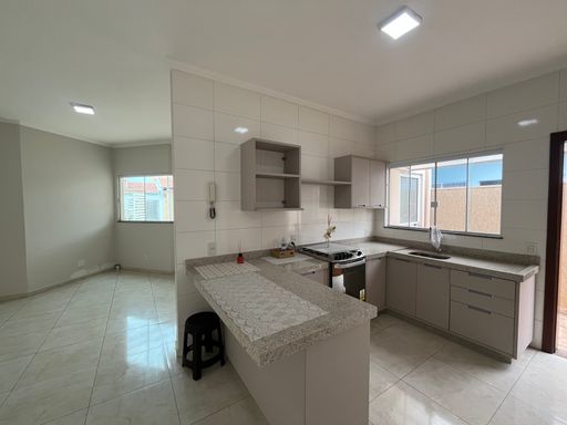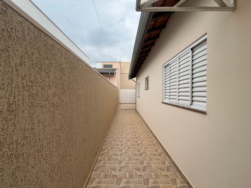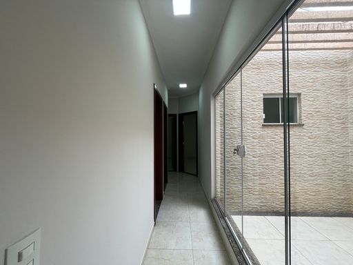 Imóvel com 3 dormitórios (sendo 1 suíte), banheiro social, área de luz, sala de estar em conceito aberto com cozinha planejada. Na parte externa possui quintal e uma área coberta para lavanderia. Além disso, possui garagem para 2 ou 3 carros.