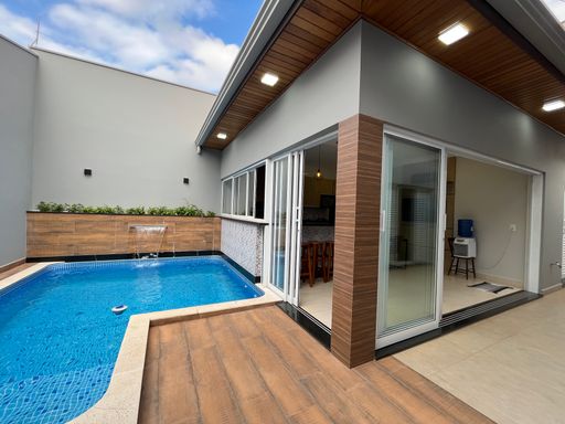 No piso inferior possui mais uma suíte, sala ampla, lavabo, cozinha planejada, área de serviço interna e externa e mais um banheiro. A área externa com churrasqueira e garagem coberta para 2 carros completam o conforto deste imóvel.