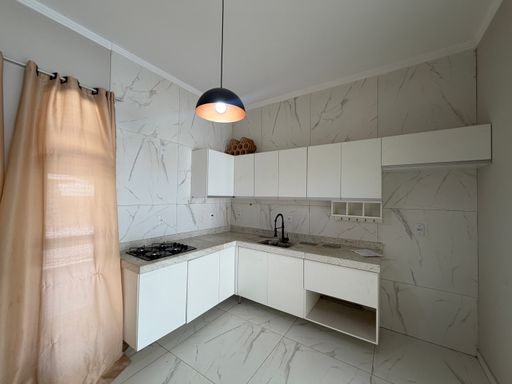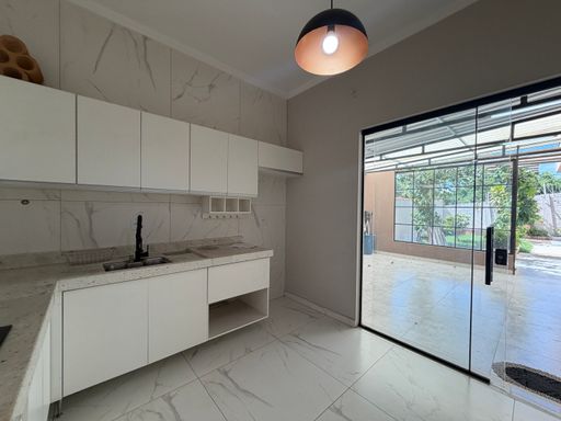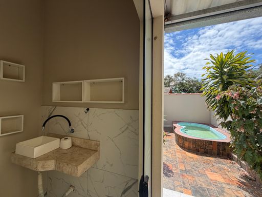 Imóvel com 3 dormitórios (sendo 1 suíte), banheiro social, sala de estar integrada a cozinha, área coberta nos fundos, quintal, piscina, lavanderia coberta, banheiro externo e garagem coberta para 2 carros.