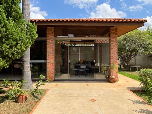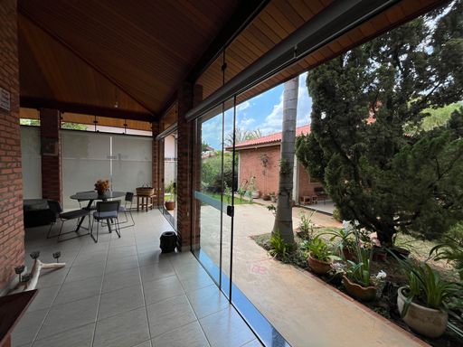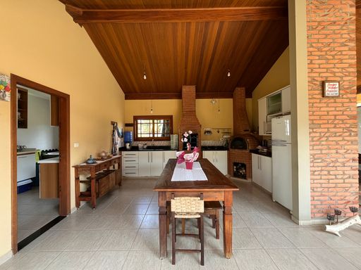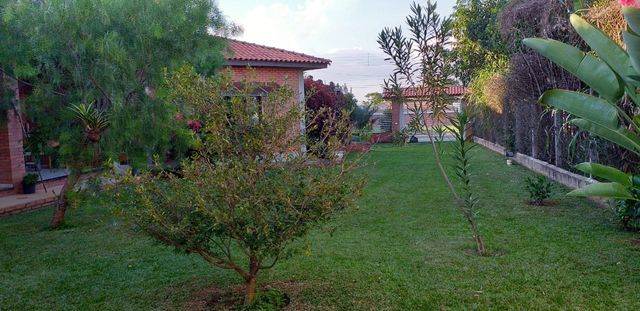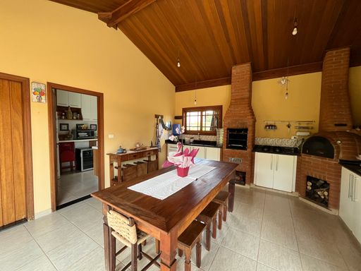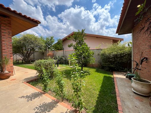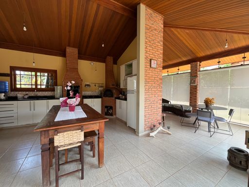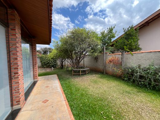 Nos fundos possui área gourmet completa com churrasqueira, forno, cozinha/área de serviço, banheiro e espaço de descanso. O quintal espaçoso, todo gramado, já com algumas plantações e espaço para horta.