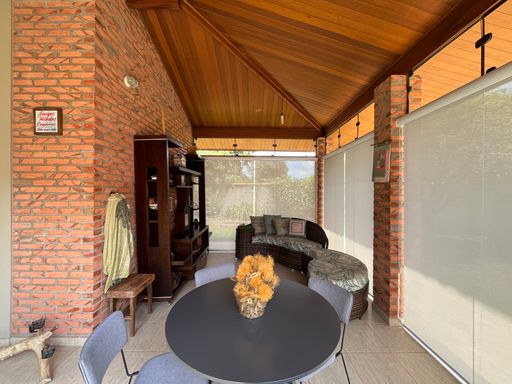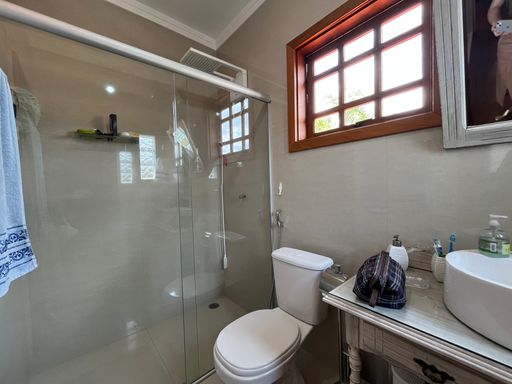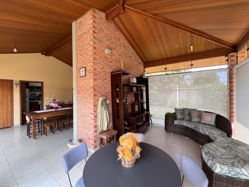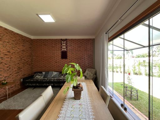 Casa com 3 dormitórios (sendo 1 suíte no piso superior e com sacada), banheiro que atende os outros dormitórios, sala de estar com lareira (pode ser reversível para transformar em suíte), sala de jantar e lavabo.