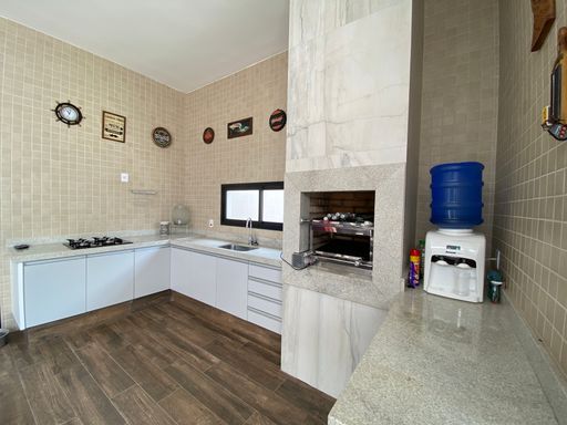 Área gourmet com churrasqueira, banheiro externo e escritório;