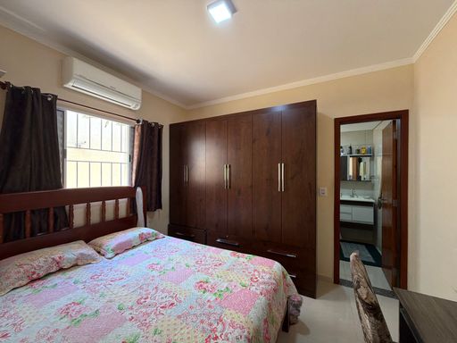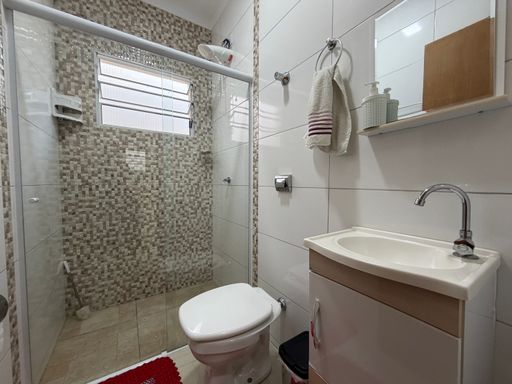 3 dormitórios (sendo 1 suíte), banheiro social, sala e cozinha integradas, área de serviço coberta nos fundos, garagem coberta para 1 carro.