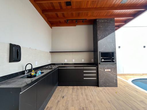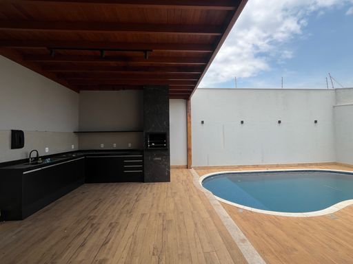 Imóvel com 3 dormitórios (sendo 1 suíte com closet), banheiro social, sala de estar, sala de jantar integrada a cozinha planejada, área gourmet com churrasqueira, piscina, banheiro externo e garagem coberta para 2 carros + espaço descoberto.