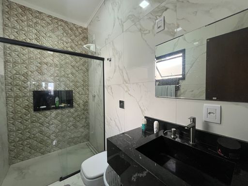 Além disso, a casa conta com garagem coberta para 2 carros + espaço descoberto. Também já possui energia fotovoltaica instalada, além de iluminação em LED, câmeras de monitoramento, alarme e cerca elétrica.