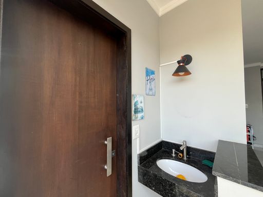 Imóvel com 3 dormitórios (2 com sacada e vista para a piscina e o terceiro é uma suíte com closet), banheiro que atende os demais dormitórios, sala de estar/jantar integradas com a cozinha planejada, lavabo, escritório.