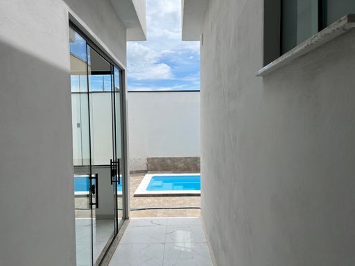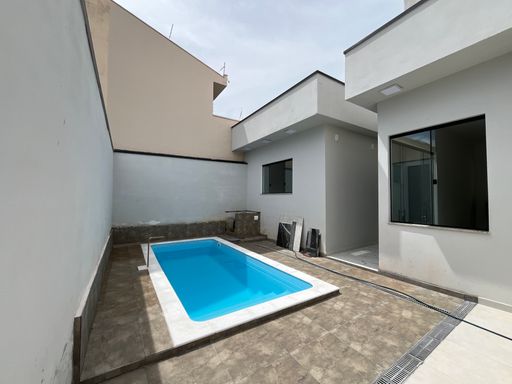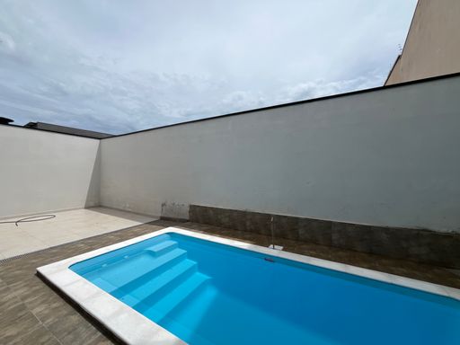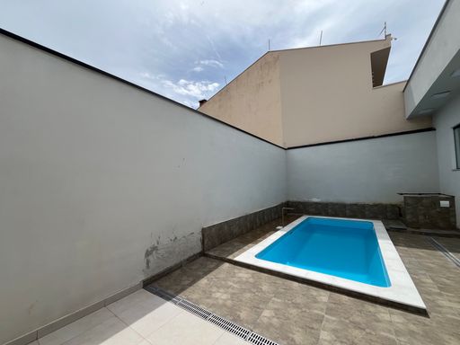 Imóvel com 3 dormitórios (sendo 1 suíte), banheiro social, sala integrada com cozinha, área gourmet com churrasqueira, banheiro externo, área de serviço, quintal, piscina, garagem para 2 ou 3 carros.