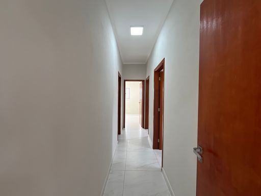 3 dormitórios (sendo 1 suíte), banheiro social, sala e cozinha integradas, área de luz, quintal, garagem para 2 ou 3 carros.