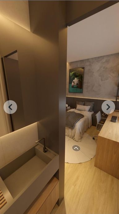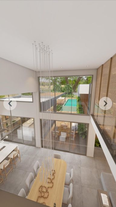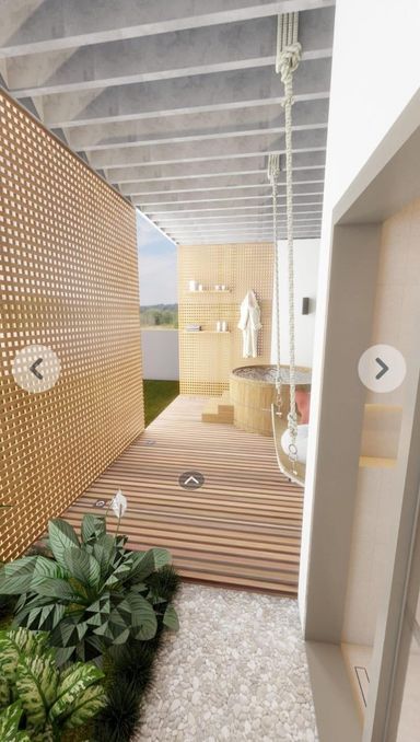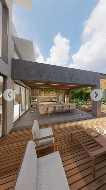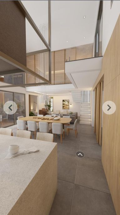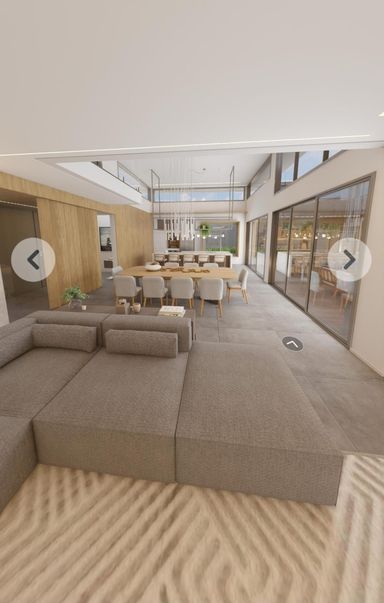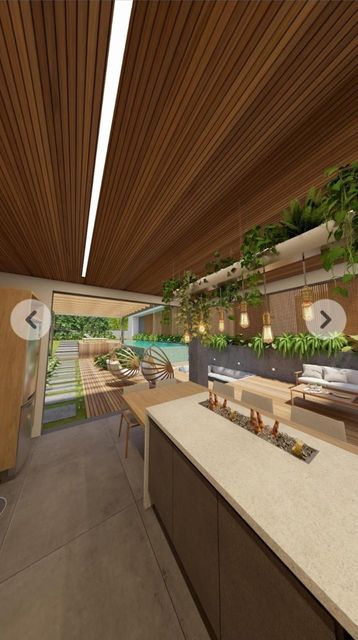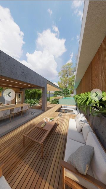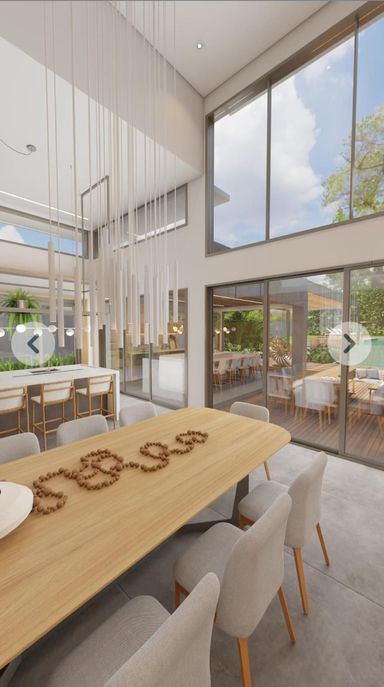 Projeto com 4 suítes (sendo uma máster com closet e ofurô), banheiro que atende os outros 2 dormitórios, sala de estar integrada a sala de jantar e cozinha, despensa, lavabo, sala de TV, terraço, escritório. Parte externa com lareira, área gourmet moderna, quintal, banheiro externo, piscina, garagem coberta para 2 carros + espaço descoberto.