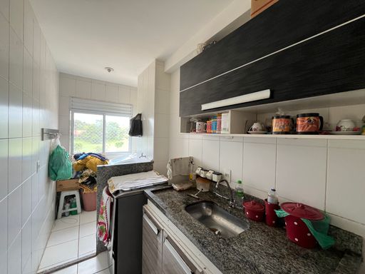 Com 49m² de área útil, o imóvel conta com 2 dormitórios, banheiro, sala de estar com sacada, cozinha, área de serviço com vista para a área verde e uma vaga de garagem.