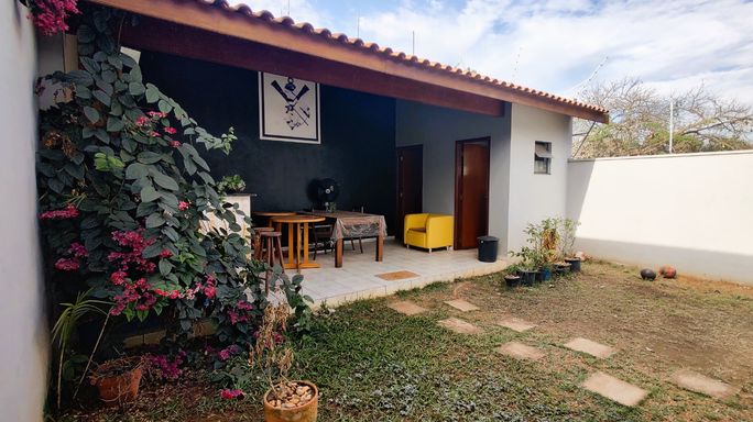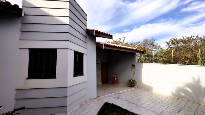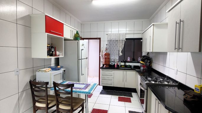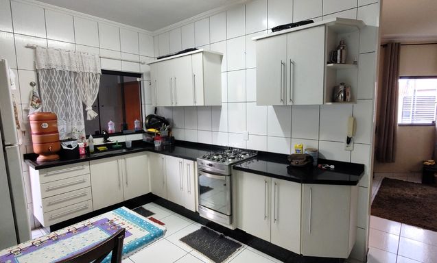 2 dormitórios (sendo 1 suíte), banheiro social, sala de estar, cozinha com armários, área de luz, edícula com área gourmet, churrasqueria, banheiro externo, quartinho/depósito, garagem coberta para 1 carro + espaço descoberto.